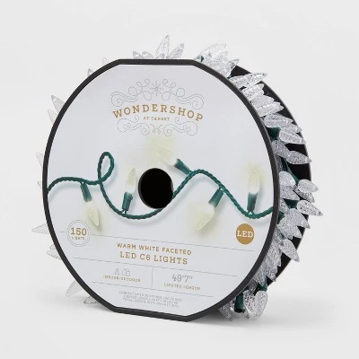 150ct LED C6 Faceted Christmas String Lights Warm White With Green Wire – Wondershop™