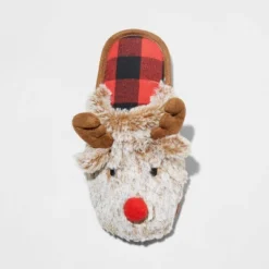Kids’ Holiday Red Nose Rudolf Scuff Slippers – Wondershop™ Brown