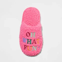Kids’ Holiday Oh What Fun! Scuff Slippers – Wondershop™ Pink