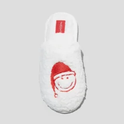Women’s Holiday Santa Happy Face Scuff Slippers – Wondershop™ Cream