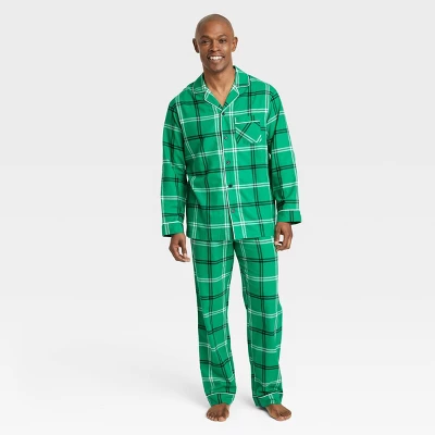 Add timeless appeal to your bedtime looks with this Plaid Flannel Matching Family Pajama Set from Wondershop™. This pajama set includes a long-sleeve flannel pajama shirt with a collared neckline and a button-front design and PJ pants, both featuring a plaid print on a green background for a coordinated look. Crafted from 100% cotton, both pieces offer you all-night comfortable wear, while the full elastic waistband on the pajama pants helps you find a secure fit. Dress each member of the family in the corresponding pairs from the Plaid Flannel Matching Pajama Set Collection for festive photo ops or holiday movie nights.